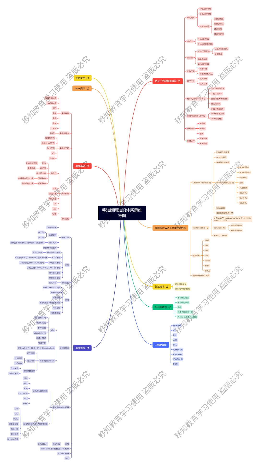 移知教育为模拟版图学员细心整理了,《模拟版图入门必备知识图谱》内含多本模拟版图必读入门书籍书籍,帮助学员整理学习思路,入门到到进阶,轻松掌握模拟版图工程师所应具备的技能和能力。