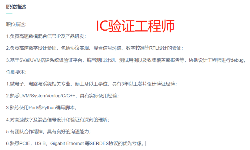 IC验证工程师,工作主要是根据芯片规格和特点设计并实现验证环境;根据芯片或模块的规格,利用已实现的验证环境进行验证和回归。