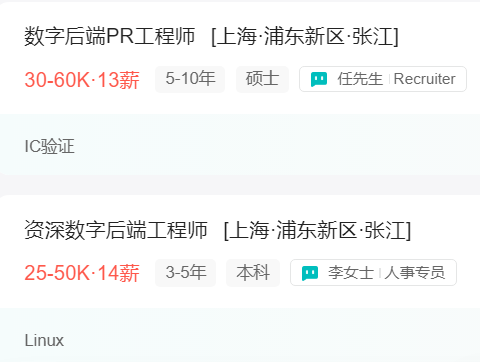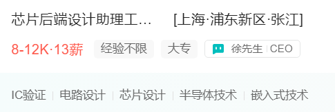 学历本科也不要气馁,有工作经验的本科生,还是可以找到数字后端工程师的职位的。毕业学校一般的同学也不要气馁,985高校毕业,在求职时肯定是有优势的,但毕竟每年毕业生不多,在现在IC行业整体缺人的大背景下,企业依然会招收学校排名一般的学生,当然前提还是一样,有专业技能(skills)和项目经验(experience)。之前有分享过,《数字IC必学之《Skill入门教程》建议收藏!》,感兴趣的同学可以去了解一下。