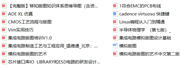 帮大家整理了一些模拟版图入门学习的电子资料,能够帮助学员整理学习思路,入门到到进阶,轻松掌握模拟版图工程师所应具备的技能和能力。有需要的同学,可以识别二维码添加微信领取。