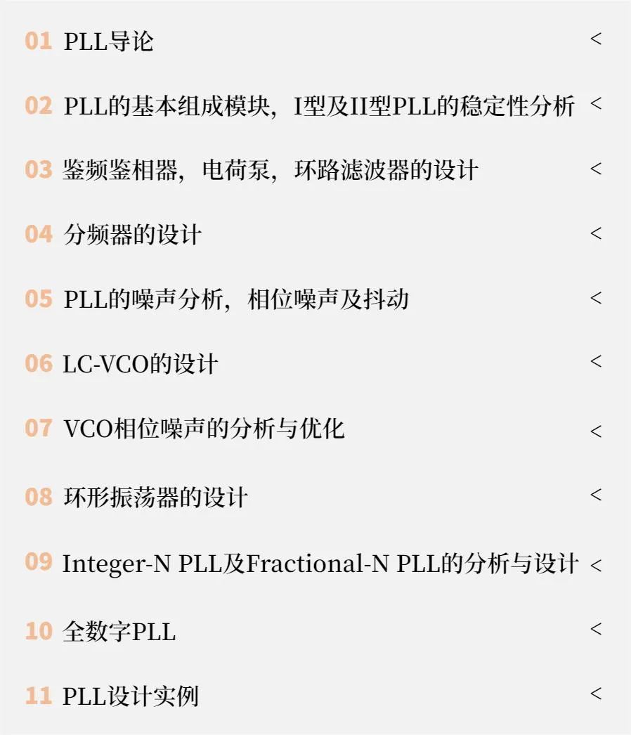 本课程帮助学员构建PLL知识体系,最大化模拟“面对面授课”,从理论到实战,成为一名合格的“芯片职场人”。