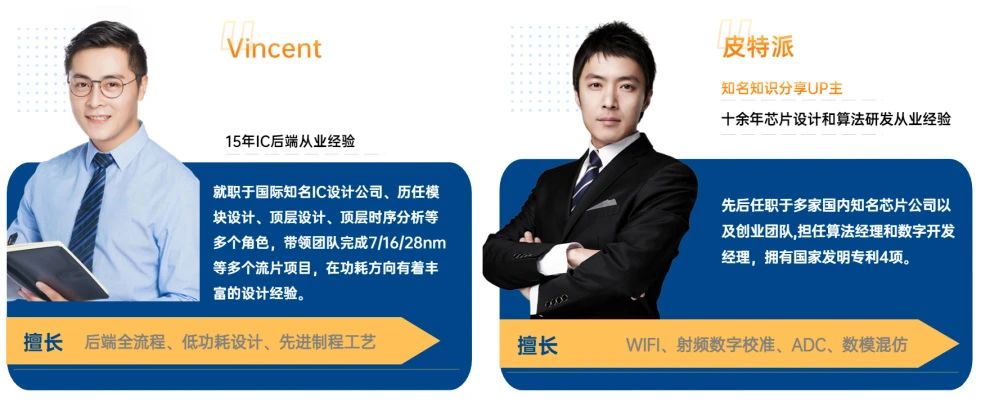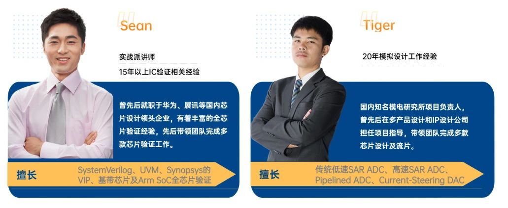 两种课程体系,大班课/零基础就业课,满足不同学员要求,全方位涵盖半导体行业所有岗位课程,前端、后端、模电、版图、验证等……