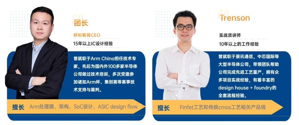 讲师团队来自行业一线大公司以及研究机构,从业经验均在10年以上。讲师的知识领域涵盖了IC行业从SOC架构开始,到IP(ARM)生态,以及IC设计的前端和后端,可测试性设计(DFT),固件系统等等。优秀的讲师是精品课程的基础,除此之外,移知还拥有一支强健的IT团队,为线上直播系统的稳定保驾护航。直播系统,EDA云实训环境等为移知自主研发的产品。