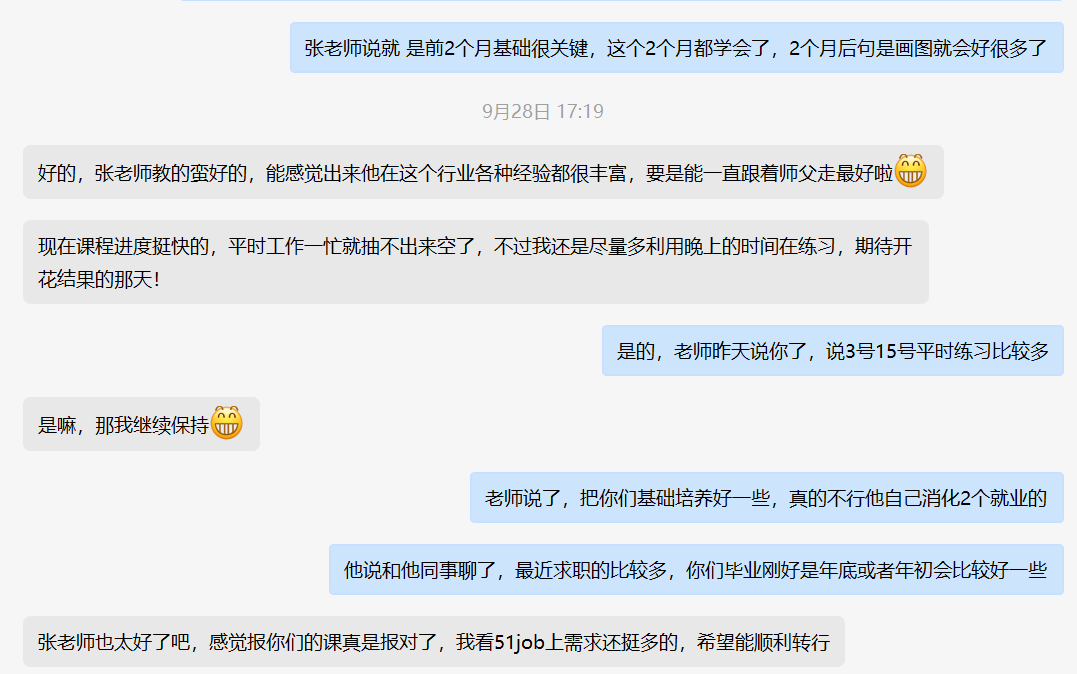 针对很多人在学习中的问题,我们也提供了多方位的答疑服务,班主任+助教老师,24小时全天候服务,群内反馈快速,认真、严肃又卖萌的小姐姐督促学习、解决困惑,还陪你唠嗑。