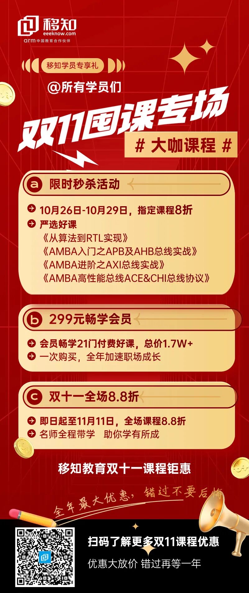 移知教育课程相比市场上其他IC培训课程都要低很多,优惠活动也很少,双十一优惠活动是最适合囤课的时机啦!