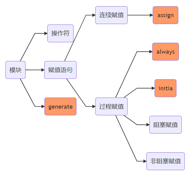 功能描述:用来描述设计模块的内部结构和模块端口间的逻辑关系。常用assign语句、always块语句等方法实现