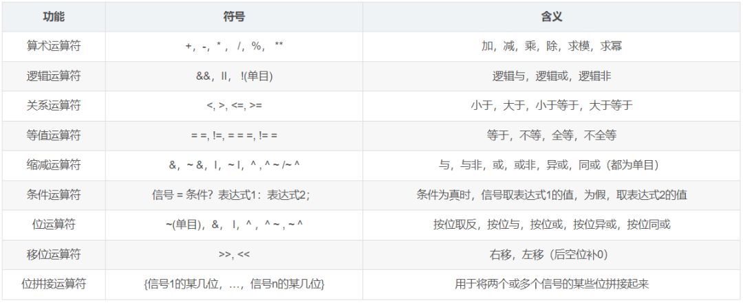 操作符也称运算符, 是Verilog HDL预定义的函数符号。
